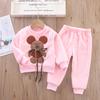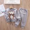 Children's Autumn and Winter Pajamas with Cartoon Bear Flannel Set of Home Clothes