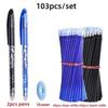 103pcs/set Black Blue Ink Erasable Pen Refills Rods Set 0.5mm Magic Erasable Gel Pen Washable Handle Office Writing Stationery