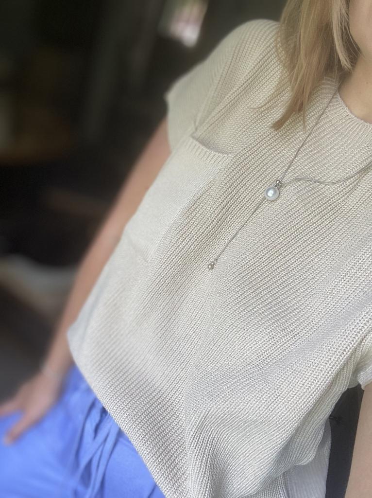 Summer Women's T-Shirt Knit Round Neck Pocket Decoration Top Short Sleeve Sweater