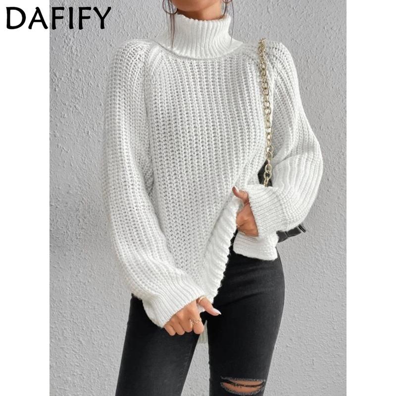 DAFIFY Women's Fashion Casual Fall Winter Solid Color Print Long Sleeve High Neck Sweaters — buy online with free worldwide shipping!