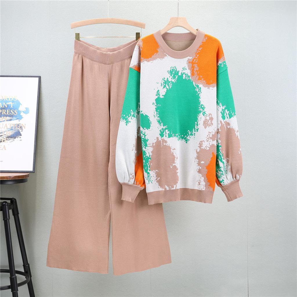 Autumn and Winter Women's Knitted Suit Simple Retro Fashion Long-sleeved Sweater Wide-legged Pants Loose Casual Two-piece Set — buy online with free worldwide shipping!