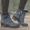 Women Leather Buckle Boots Heel Boots Large Size Side Zipper Casual Shoes