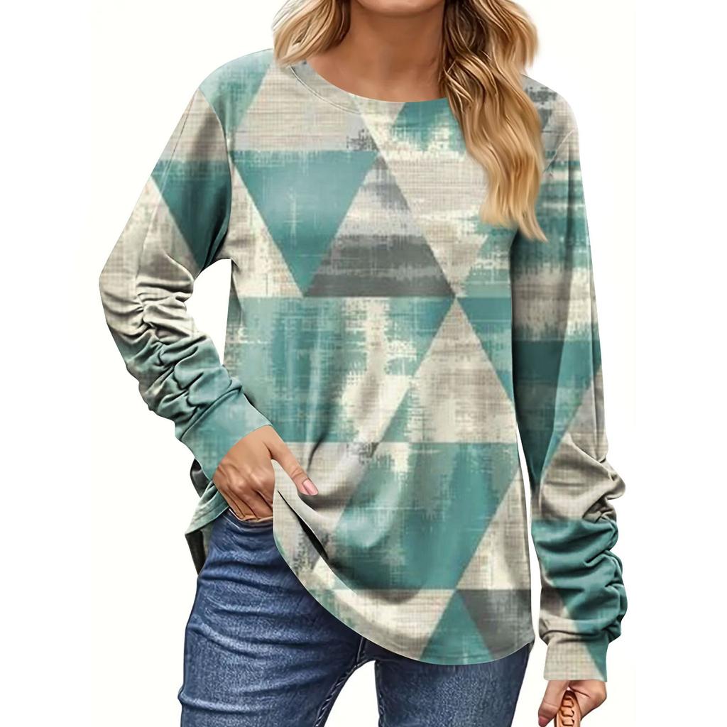 Women's Fashion Casual Long Sleeve Print Round Neck Pullover Top Blouse
