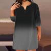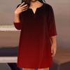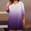 Women's Fashion Plus Size V-Neck Seven Sleeve Casual Printed Loose With Pockets Dresses