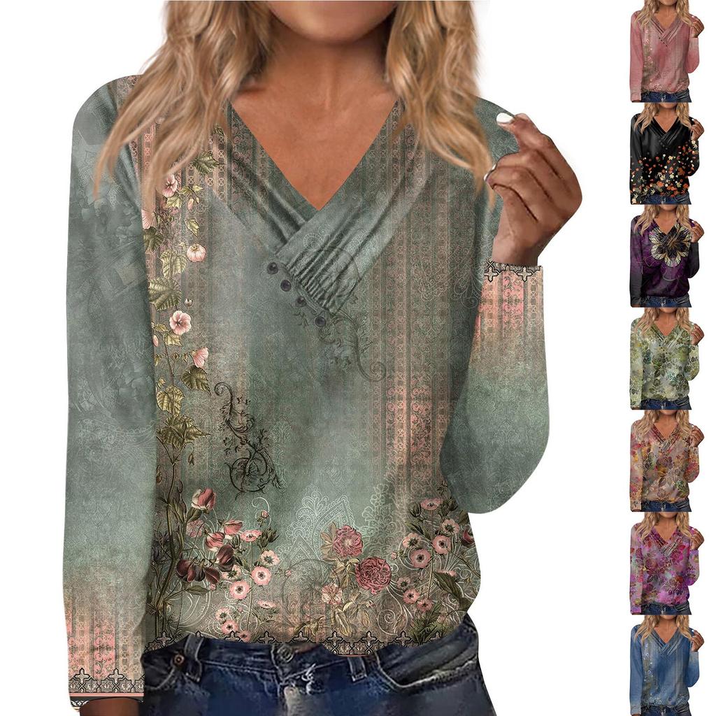 Women's Shirts Dressy Casual Sexy Fashion Pleated V Neck T-Shirts Button-down Fashion Clothing Tunics T-Shirts Pullovers