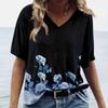 Women's Fashion Casual Print V-neck Short Sleeves Printed T-shirt