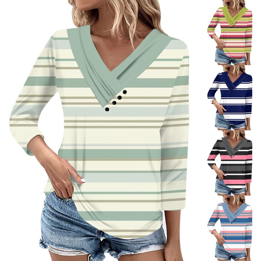 Womens 3/4 Sleeve Daily Weekend V Neck Casual Printed Tshirts Loose Fit Pleated Tees Ladies Blouse — buy online with free worldwide shipping!
