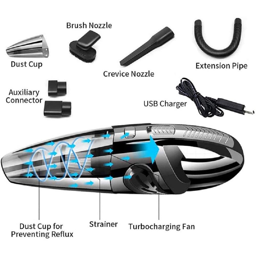 --120W super power motor provides strong suction up to 8500 pa, can easily absorb hair, food residue, particles, and less than 0.1 micron debris hidden in the sofa, cushion, etc. A wise choice for daily quick pick-up, car cleaning and home cleaning.