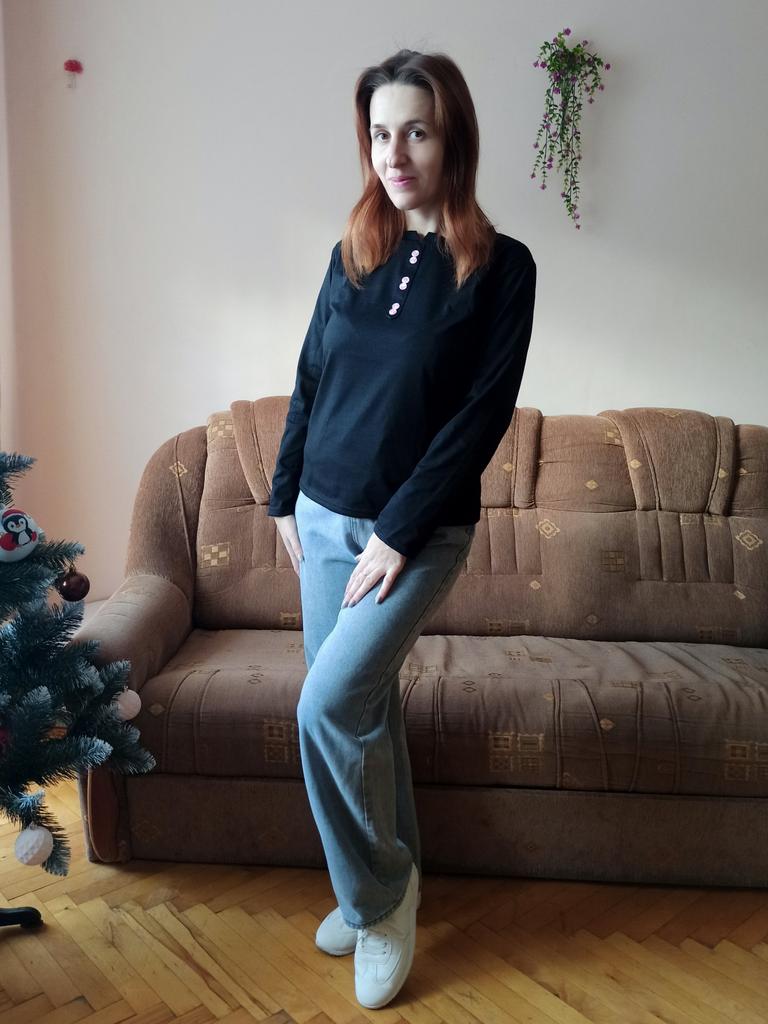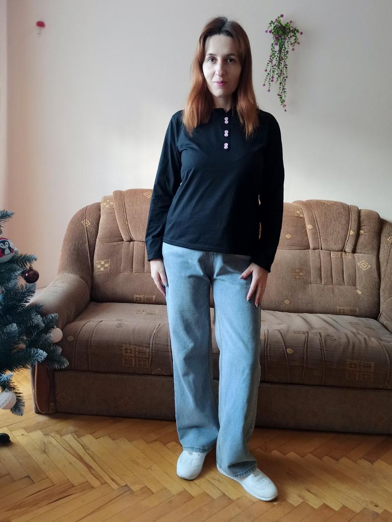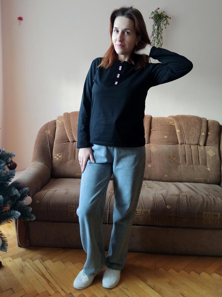 Poor quality of knitwear, poor sewing, not sure if it is 100% cotton, can only be used as home clothes. The color looks completely different, absolutely not beautiful, faded blue of a different shade, I would not buy it.