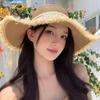 Lace Bow Straw Hat Women's Summer Seaside 2024 New Sunscreen Hat French Fashion Big Brim Sun Hat