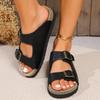 Fashion High Quality Cork Slippers 2024 Summer New Buckle Double Belt Thick Soled Beach Shoes Large Size Flat Sandals 35-43