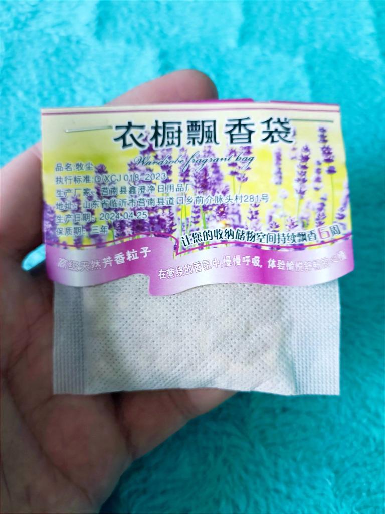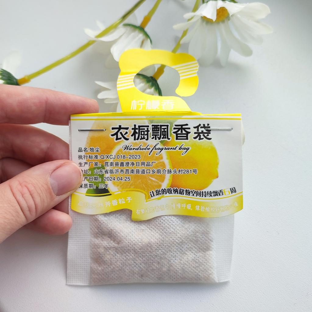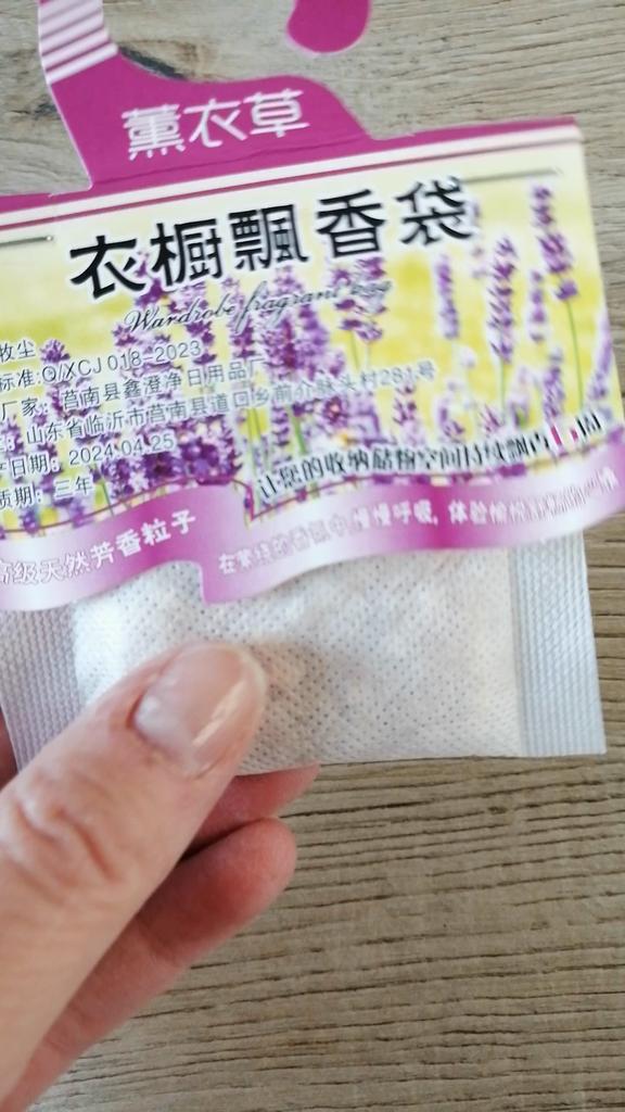 WARDROBE FRESHENER closet freshener available in 4 different fragrances, You can buy 1 piece or the set of 5 or 10 pieces. Small gauze bag with micro holes and cardboard to hang it inside the wardrobe. Arrived with tracked shipping in 16 days in a combined package. I chose the lavender scent, delicate and also anti-moth..