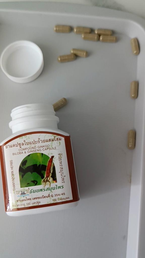 Thanyaporn Herbs Phytopreparation Ginkgo Biloba and Ginseng Capsules for Improving Brain Function, 100 Capsules.