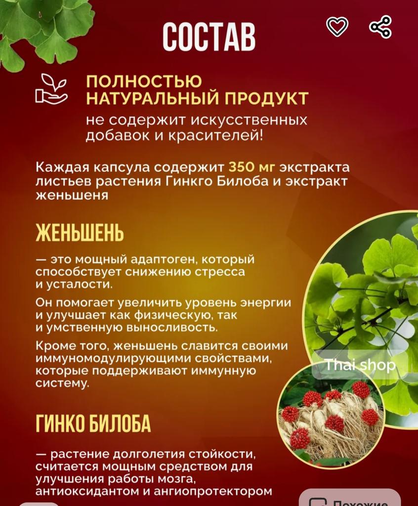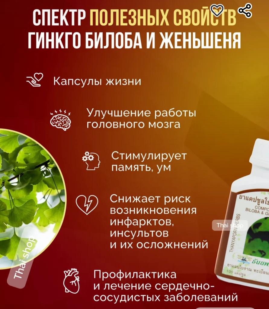 Thanyaporn herbs Phytopreparation Ginkgo Biloba and Ginseng Capsules for Improving Brain Function, 100 capsules. — buy online with free worldwide shipping!
