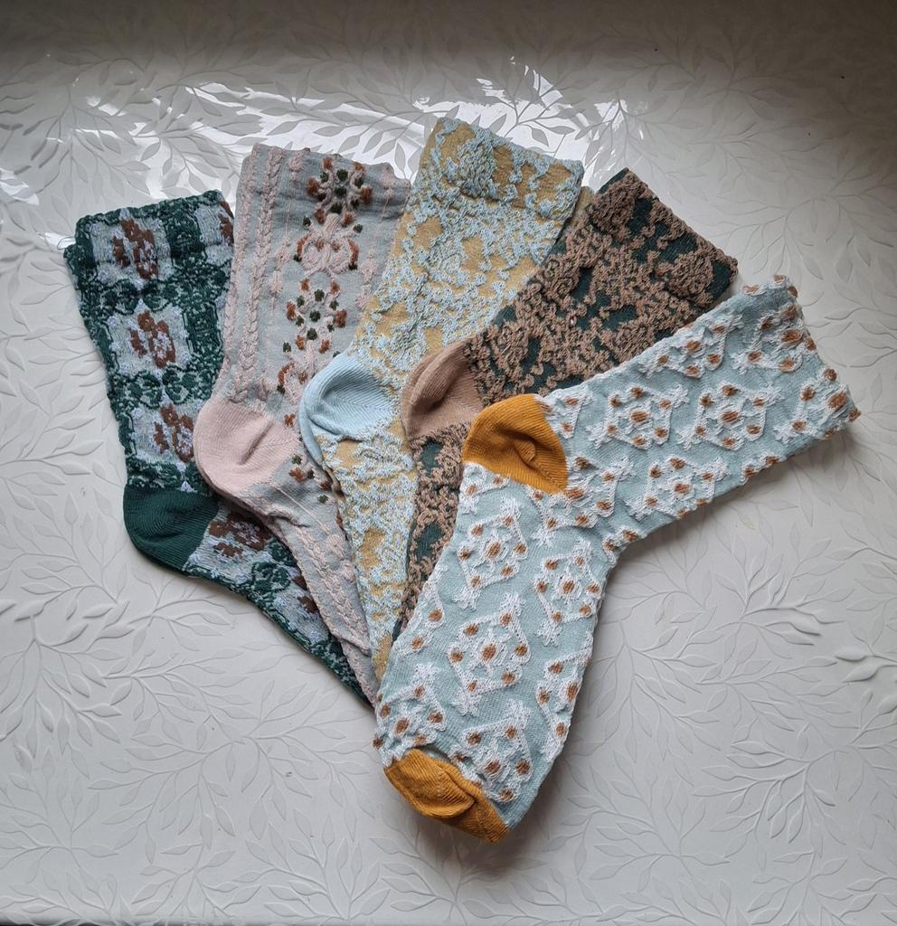 5 Pairs Palace Style Retro Relief Women's Mid Tube Socks Elegant Casual Wear — buy online with free worldwide shipping!
