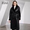 ziai 2024 Winter Faux Leather Jacket Women Long Warm Plush Fur Collar Padded Coat Fashion Pocket Cotton Female PU Parkas K18