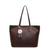 Solid Color Pu Zipper High-end Retro Shoulder Bag Women's New Trendy Autumn Sewing Thread Large Capacity Tote Commuter Bag