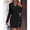 YYFS Women's Fashion Fall Winter Solid Color Print Long Sleeve POLO-Neck Casual Dresses — buy online with free worldwide shipping!