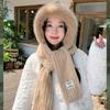 Autumn and Winter Plush Hat, Women's Large Head Circumference, Windproof Ear Protection Scarf, Integrated Hooded Thickened Warm Wool Hat