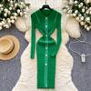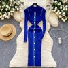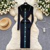 Autumn Winter Women Knitted Dresses 2024 Vintage Patchwork Striped Long Sleeve Bodycon Sexy Chic Long Dress