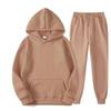Autumn Winter Solid Color Sportswear 2-piece Hooded Sweatshirt Sweatpants with Plush Loose Casual Sweatshirt Set — buy online with free worldwide shipping!
