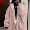Pink Plus Velvet Hooded Sweatshirts Women Autumn Winter Zipper Thicken Warm Hoodies Woman Korean Student Lamb Wool Coat
