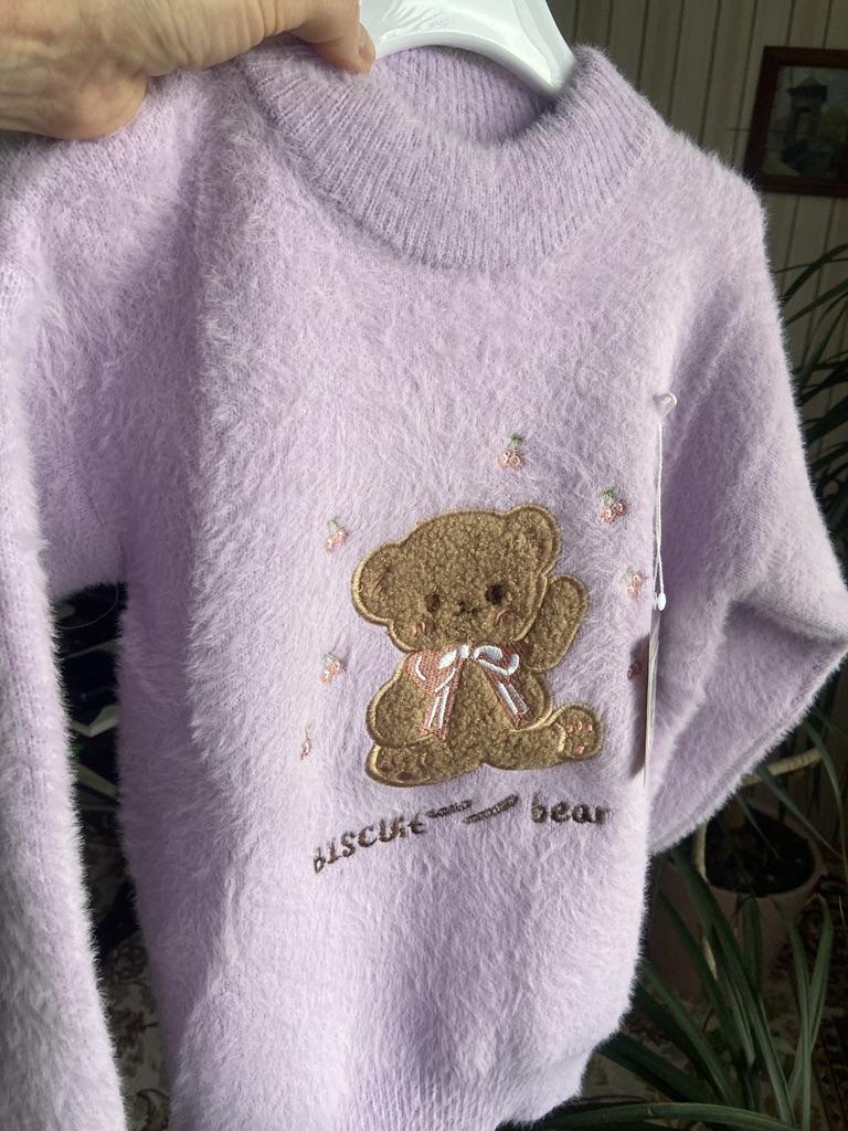 Child Sweater Autumn Winter Pullover Tops Girls Round Neck Sweaters Velvet Cartoon Long Sleeve Knitted Shirt — buy online with free worldwide shipping!
