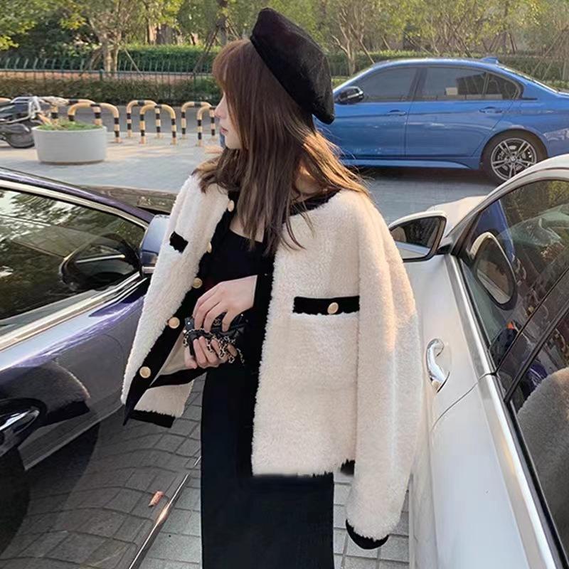 Lamb plush small fragrant jacket for women in autumn and winter, thickened design, niche Korean temperament, warm cotton coat for small people — buy online with free worldwide shipping!
