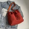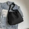 2024 New Japanese Solid Color One Shoulder Underarm Bag Folded Simple Drawstring Lightweight Casual Commuter Double Shoulder Bucket Bag