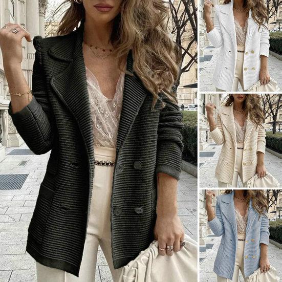 Women Fall Winter Coat Double-breasted Solid Color Thick Soft Warm Turn-down Collar Cardigan Buttons Pockets Mid Length OL Commute Style Lady Jacket — buy online with free worldwide shipping!