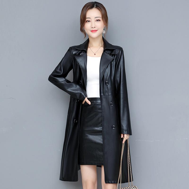 Autumn and Winter New Cotton Leather Coat Women's Mid Length Fashion Imitation Sheepskin Windbreaker Large Motorcycle PU Leather Coat — buy online with free worldwide shipping!