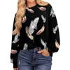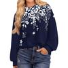 Women's Fashion Printed Ribbed Long Sleeve Drop Shoulder Loose Round Neck Top