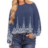 Ladies' Fashion Solid Color Thread Long Sleeve Loose Round Neck Pullover Top