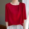 INDFS Women's Fashion Casual Summer Spring Solid Color Print 1/2 Sleevess O-Neck Blouses & Shirts — buy online with free worldwide shipping!