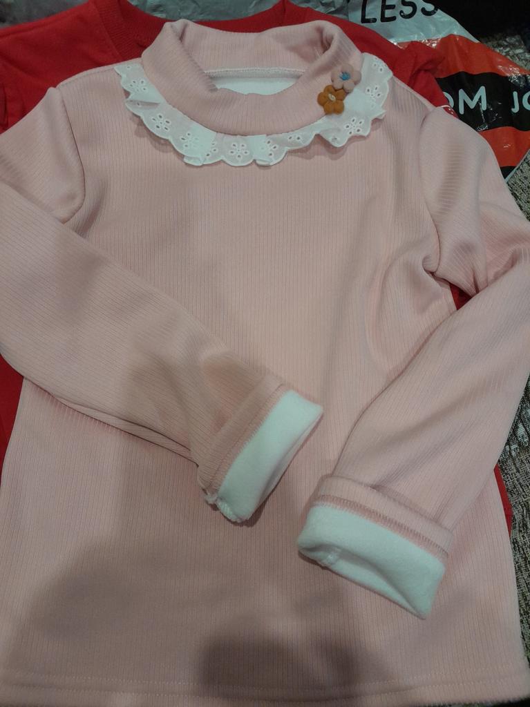 Girls' Winter Velvet Lace Turtleneck Knit T-Shirt