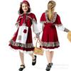 Halloween Girls Medieval Manor Farm Maid Cosplay Costumes with Hood Little Red Riding Role-Playing Stage Performance Disguise