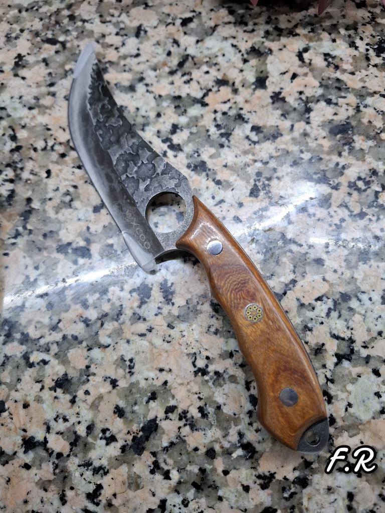 Stainless steel kitchen knife with very good quality and a good grip. It is very, very affiliated, it cuts everything you put in front of it until it debones any piece of meat. I recommend it 👍 👍 👍🤩 👌 👌 👌. 📦 Package Content: Stainless steel kitchen knife 🔪. A protective knife sheath. 👍Pros: Delivery to Spain in 27 days. ✈️ Well packed for the trip. Excellent presentation in its box. Product quality is excellent. It is stainless steel. It has a good grip, it is very comfortable and it is very easy to handle. It is very beautiful to look at. super affiliate. It cuts everything you put in front of it until it debones any piece of meat. Does its job perfectly. This knife does pass the cut 👍🏻. 👎Cons: nothing to note. .