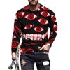 Spring and Autumn New Men's 3D Digital Printed Checkered Floral Long Sleeve Round Neck Minimally Casual T-shirt