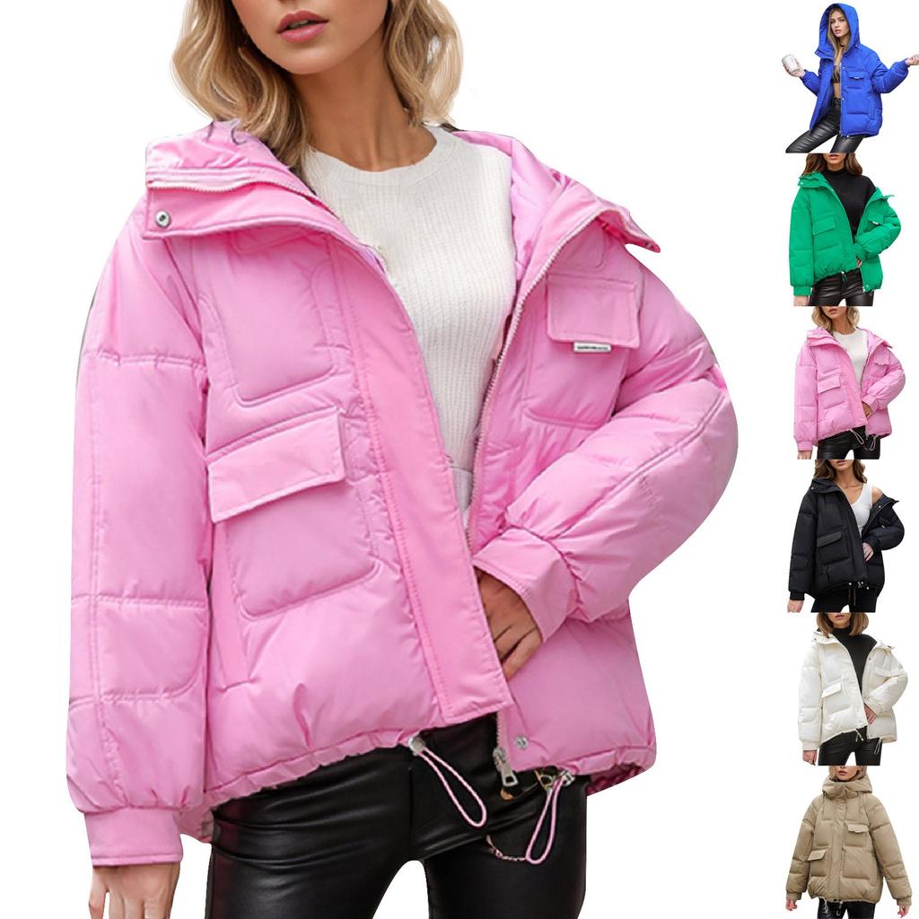 Women's Winter Warm Cotton With Multiple Pockets And Aipper Hooded Cotton Jacket
