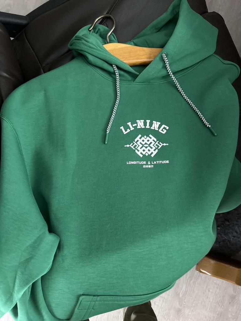 Li Ning Sports Lifestyle Series Letter Hooded Pullover Sweatshirt Men Sweatshirt Cool-Green AWDT377-4 — buy online with free worldwide shipping!