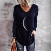 Animal Letters Feather Moon Printed 3D T Shirts Plus Size Black Tees Women Fashion V Neck Long Sleeve T Shirt — buy online with free worldwide shipping!