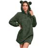 Women's Plush Hooded Casual Cute Bear Ears Pajama Dress