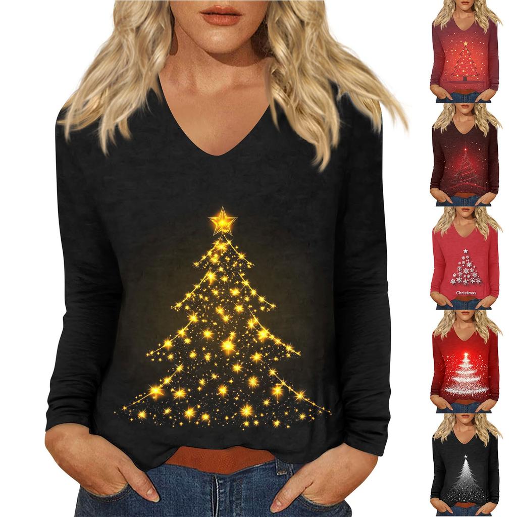 Women's Daily Casual Long Sleeve Christmas Print V-neck Top — buy online with free worldwide shipping!
