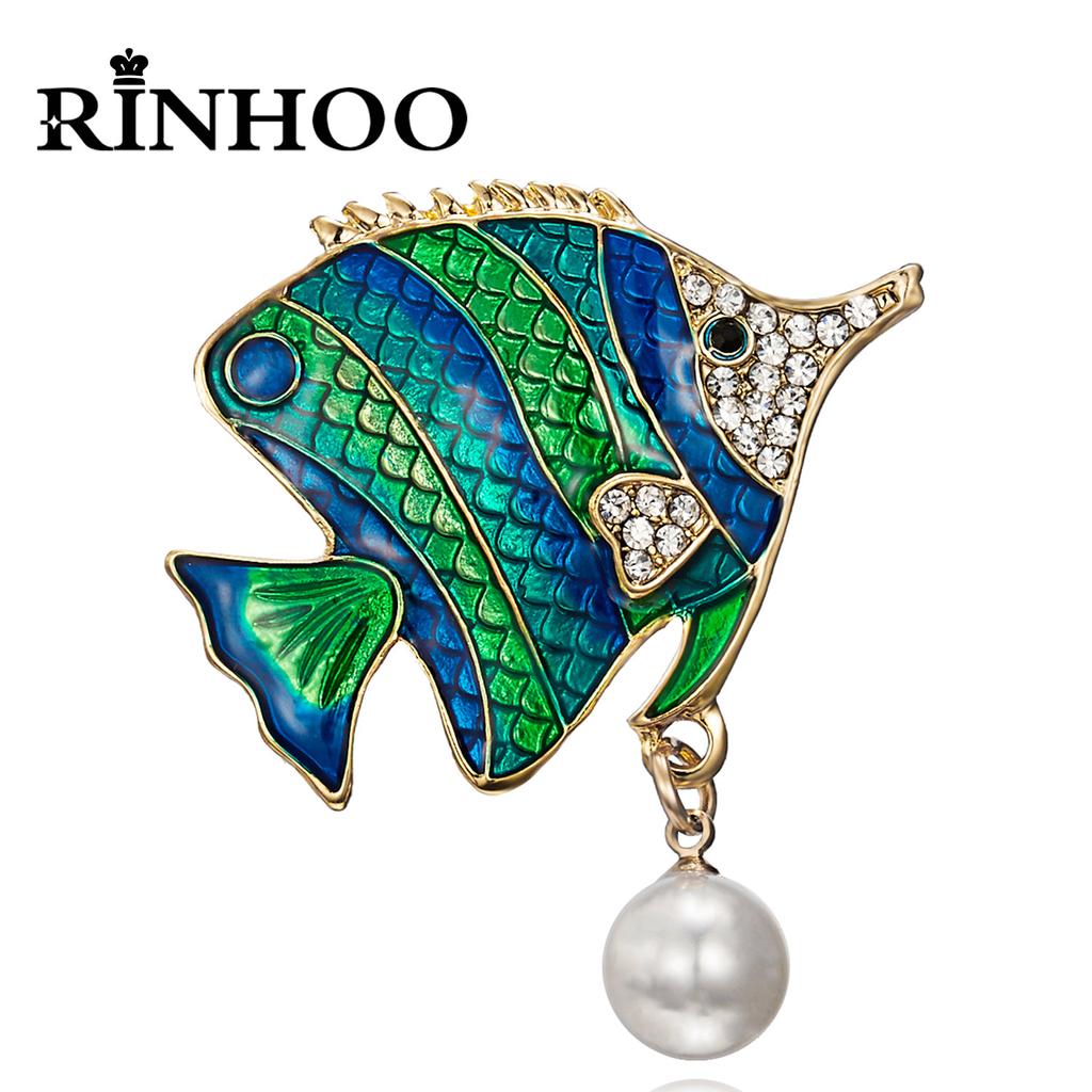 Rinhoo Lucky Fish Enamel Lapel Pins Sparkling Rhinestone Animal Goldfish Dolphin Whale Shark Brooch Clothes Badge Button Jewelry — buy online with free worldwide shipping!
