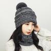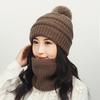 Winter Women's Scarf Knitted Hat Velvet Warm Ball Wool Hat Windproof Neck Protection Hat Scarf Two-Piece Set