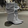 2024 Cowboy Knee High Chelsea Boots 2024 New Autumn Winter Pointed Toe Women Stilettos Shoes Gladiator Motorcycle