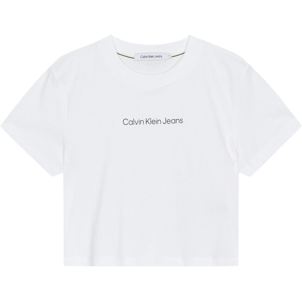 Calvin Klein Solid Short Sleeve T-Shirt Women Tops White J224288-YAF