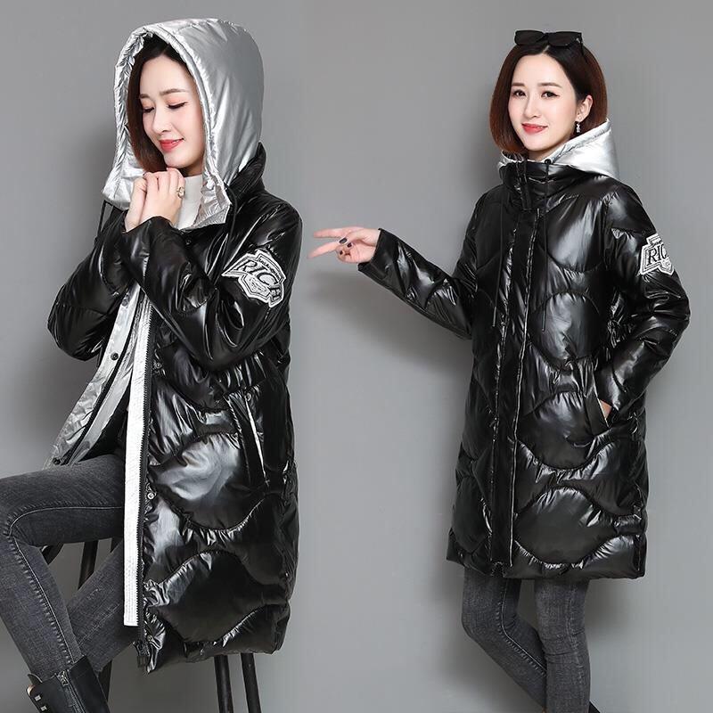 High Quality New Autumn Winter Loose Quilted Coat Warm Stand-collar Parka Jacket Women's Glossy Mid-length Jacket