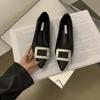 Fashion Casual Women Slides Flat Loafers 2024 New Arrivals Black Rhinestone Buckle 2024 New Arrivals Shallow Slip On Dress Shoes Woman