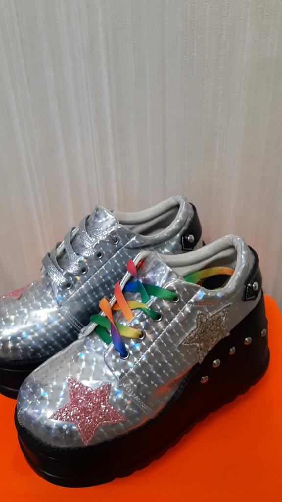 Fashion Silver Patent Leather Chunky Sneakers Women Gothic Thick Bottom Vulcanized Shoes Woman Punk Wedge Heeled Platform Combat Shoes